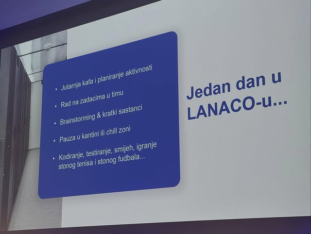Informatički smjer naše škole danas je bio u posjeti jednoj od najvećih IT kompanija kako BiH tako i u regionu, Lanaco. Hvala im na korisnoj prezentaciji, nekim novim informacijama i ugodnoj dobrodošlici.